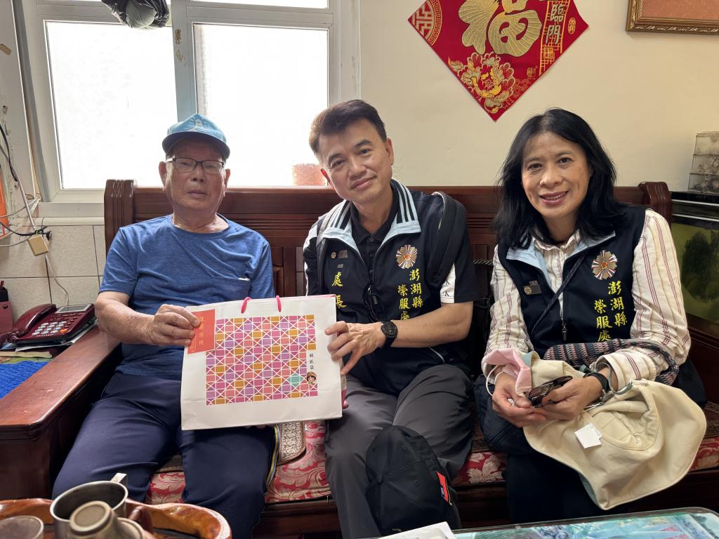 澎湖縣榮服處表示,秉持輔導會「榮民在哪裡,服務就到哪裡」核心服務理念,不畏舟車勞頓,服務不間斷,未來將持續鏈結各界資源,讓榮民(眷)在節日裡都能感受到國家關懷與榮譽延續。