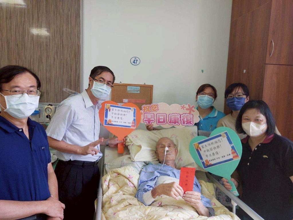李家主任向住院長輩們逐一問候致意,祝福長輩早日康復,長輩們看見家主任都像看到自己家人般開心。長輩表示,屏東榮家關懷讓住院長輩均感受到溫暖,也增進榮民伯伯對榮家認同感。