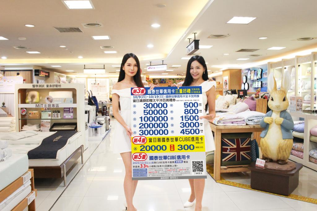 週年慶第2波,除了全館1-7樓+9樓(部份除外)當日滿5000送500累計贈送無上限,首四日超狂加碼不限量的滿1萬5加送500之外,國泰世華信用卡也持續推出三重好禮,當日刷卡滿3萬起即贈太平洋百貨禮券(限量),最高加贈到4500;刷國泰世華CUBE信用卡當日滿2萬再加贈300;選擇樂饗購加Level 3權益再享3.3%回饋!
