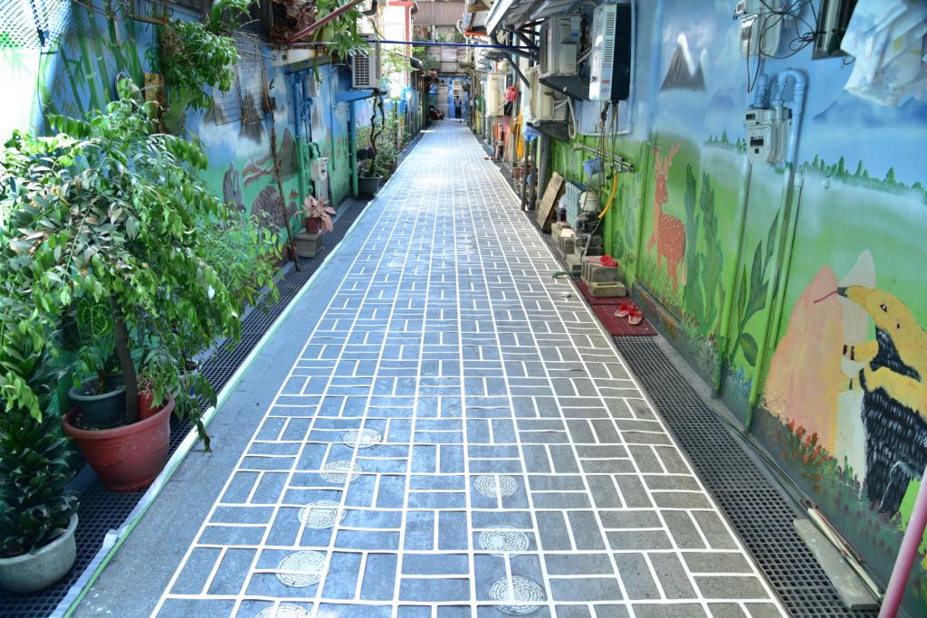 (本報訊)污水工程推動中最困難的一哩路,莫過於「後巷接管」。由於巷道施工空間狹隘、環境陰暗潮濕又雜亂,甚至還要克服住戶自行增建的障礙,使得推動過程充滿挑戰。為提升居住生活品質及改善周邊水域環境,臺中市政府水利局積極推動後巷接管政策,並結合後巷環境美化,近期於南區長榮里完成「綠川」與「動物秘境」主題牆面彩繪,讓原本灰暗角落,搖身一變成繽紛童趣的彩繪祕境,成為居民聚會、休憩的新天地。