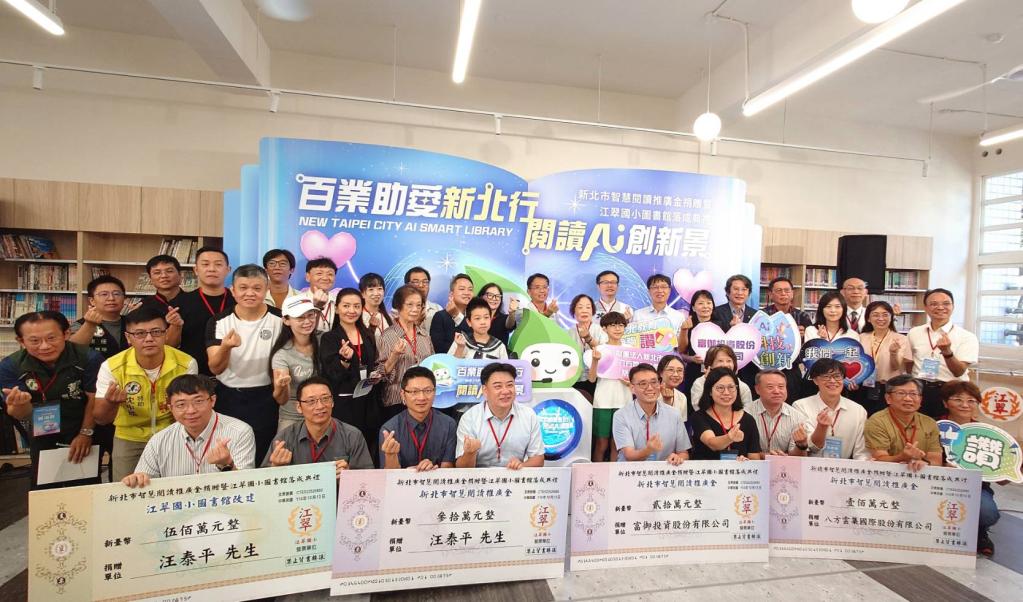 (勁報記者胡光輝/新北報導)閱讀力就是未來力!新北市教育局今(13)日上午於板橋區江翠國小舉辦「百業助愛新北行 閱讀AI創新景-新北市智慧閱讀推廣金捐贈暨江翠國小圖書館啟用典禮」,由八方雲集國際股份有限公司、富御投資股份有限公司與汪泰平先生共同捐贈江翠國小及新北市15所高中、國中、小學閱讀推廣金共計650萬元。在新北市秘書長邱敬斌的見證下,公私協力打造結合AI與數位科技的智慧圖書館,讓孩子開啟閱讀新視野。