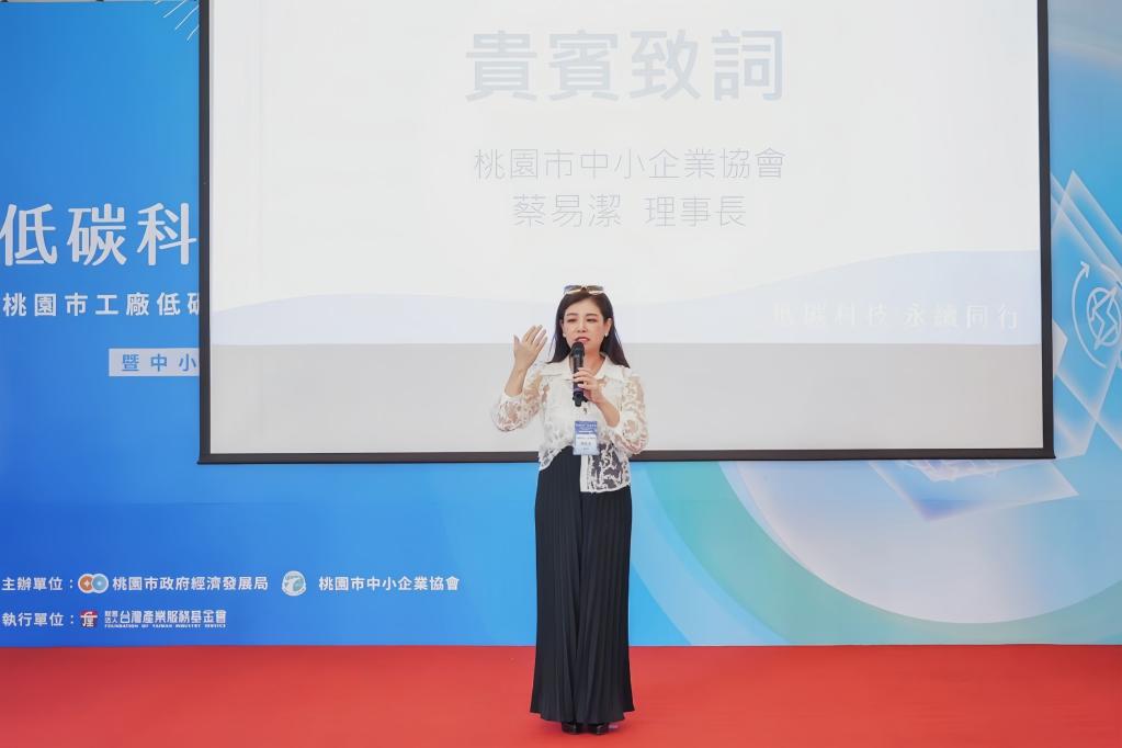 圖說:桃園市中小企業協會理事長蔡易潔博士於活動中致詞,呼籲政府與企業協力減碳,避免因灰電問題影響出口與外資投資信心。