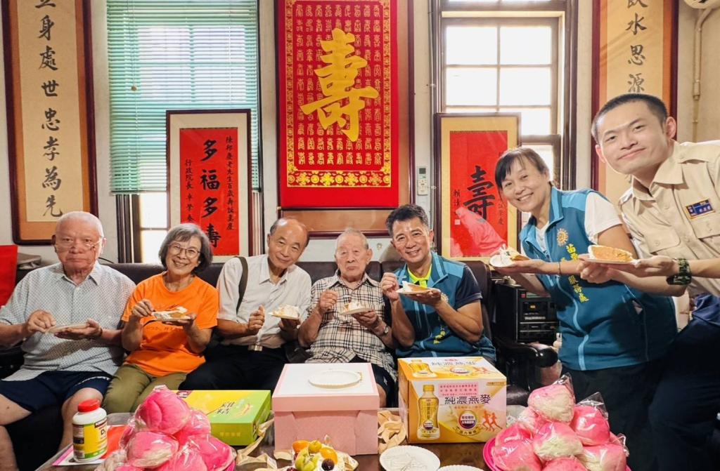榮服處說明,陳爺爺為陸軍准尉退役,由女兒及女婿細心照料,雖已至期頤之年,仍精神奕奕,偶爾還能至關懷據點上課;此次百歲大壽由女兒、女婿、姪子陪伴慶生,心情特別愉悅。