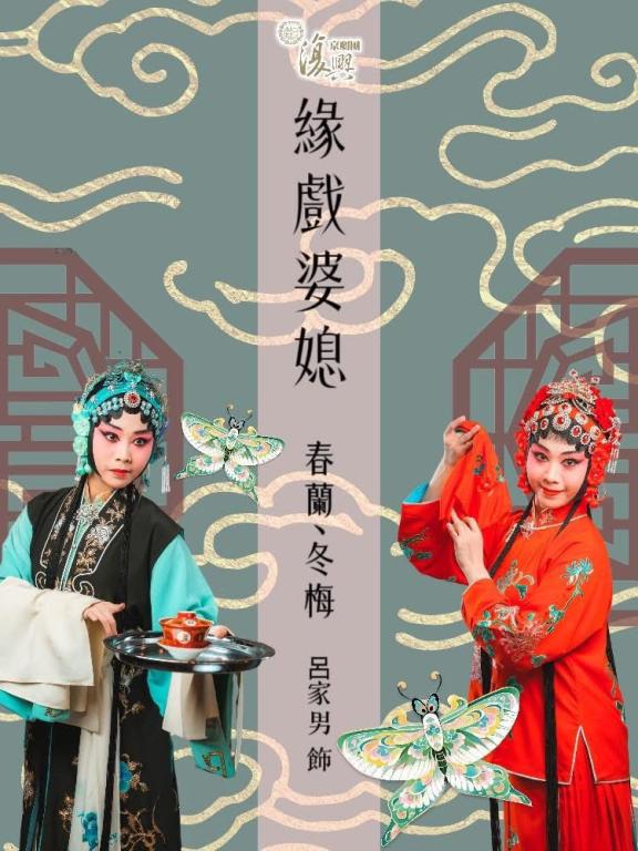 「緣戲婆媳」敘述長媳春蘭因婆婆的苛責與偏見被逐出家門,次媳冬梅則以機智與堅毅面對衝突,最終促成婆婆和長媳、次媳一家和解團圓。劇中兩位主角性格迥異、表演身段層次分明,分別以青衣與花旦行當詮釋,對旦行的唱、念、做、打皆是極大考驗。由復興劇團優秀青年演員呂家男首度挑戰一人分飾兩角,以青衣與花旦雙重呈現,令人耳目一新。