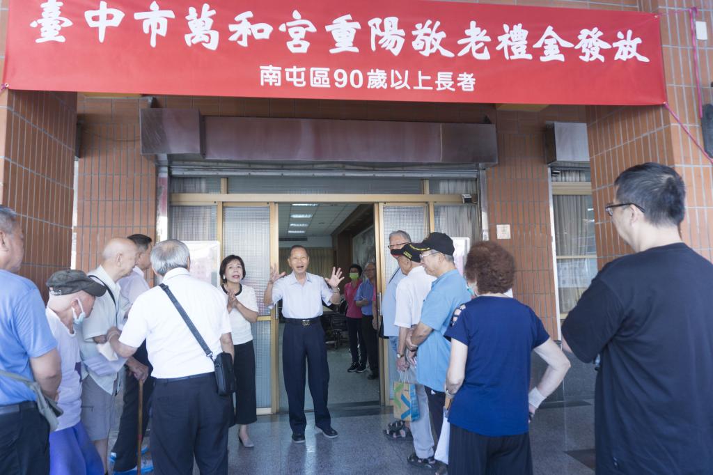 圖說:萬和宮今天發放敬老禮金,董事長蕭清杰祝福耆老吉祥安康。(台中萬和宮提供)