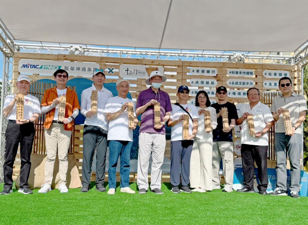 圖說:十三行博物館館長羅珮瑄與聯華神通集團總裁苗豐強等人以竹簡書寫「永續願景牆」,象徵文化與永續傳承延續。