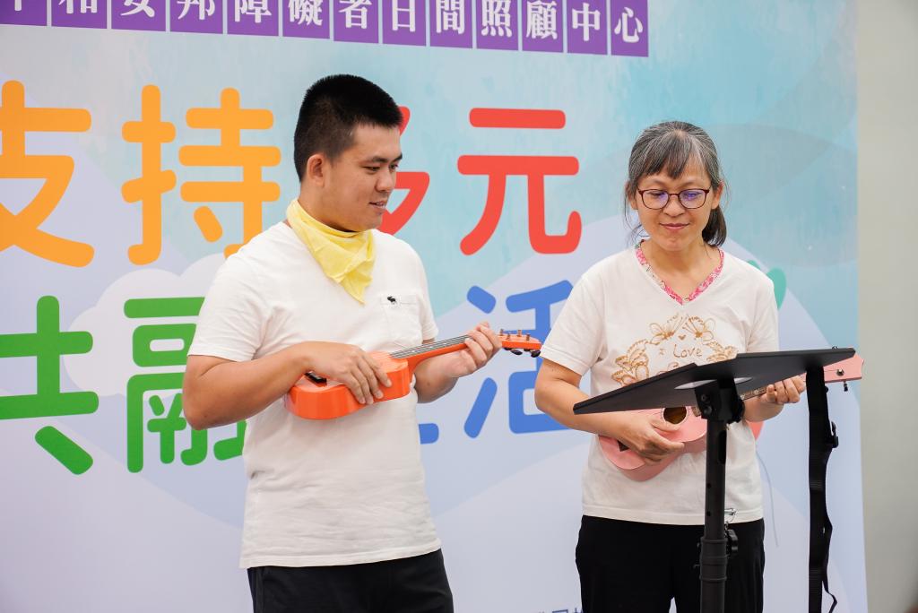 圖說:小淳和母親一起用烏克麗麗彈奏You are my sunshine 展現學習成果。