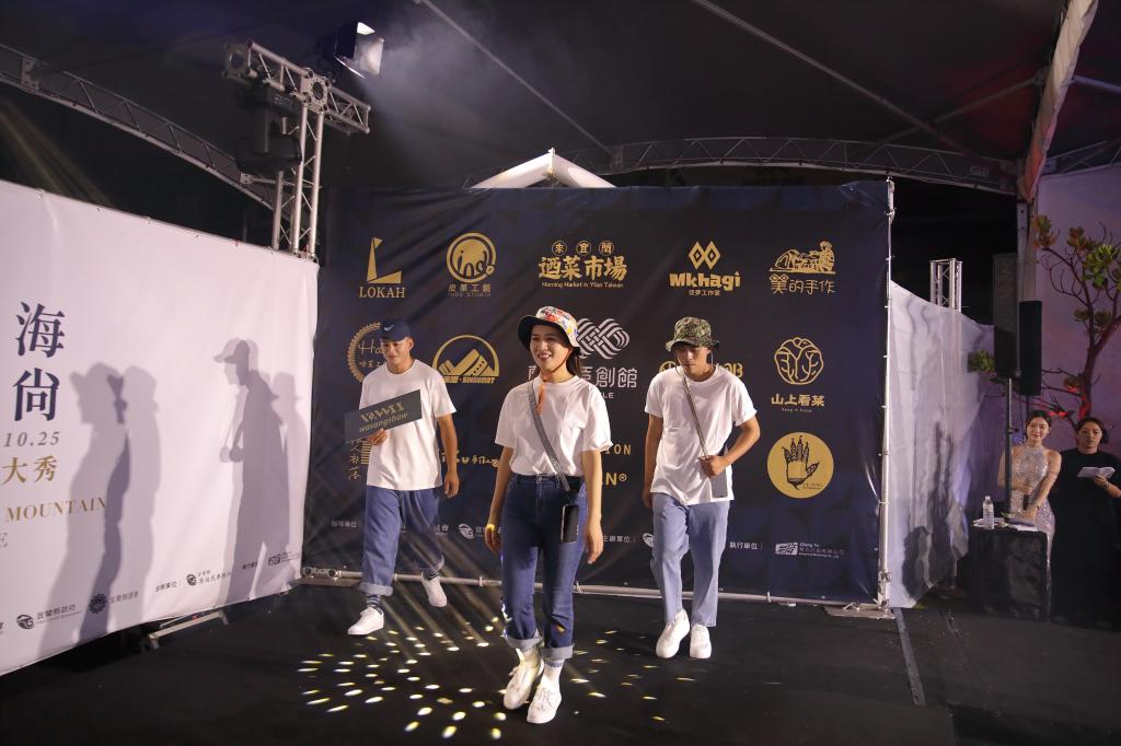 ▲山海風尚周年大秀開場由林茂盛代理縣長運用塑料廢棄物再製的時尚單品揭開。