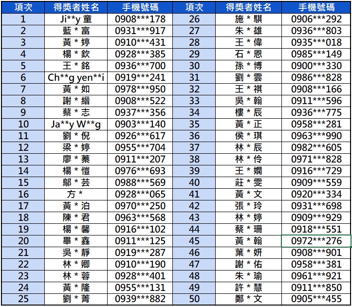 圖說:「尋找新北市YouBike善意人」得獎名單。