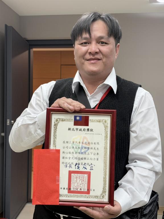 新北市長侯友宜今(5)日在市政會議上特別表揚林榮新的善行義舉,他表示,林榮新的暖心舉動,不僅體現「以人為本」的公共運輸精神,更讓城市裡多了一份溫度,提醒人們真正的美景,是人與人之間的善意。