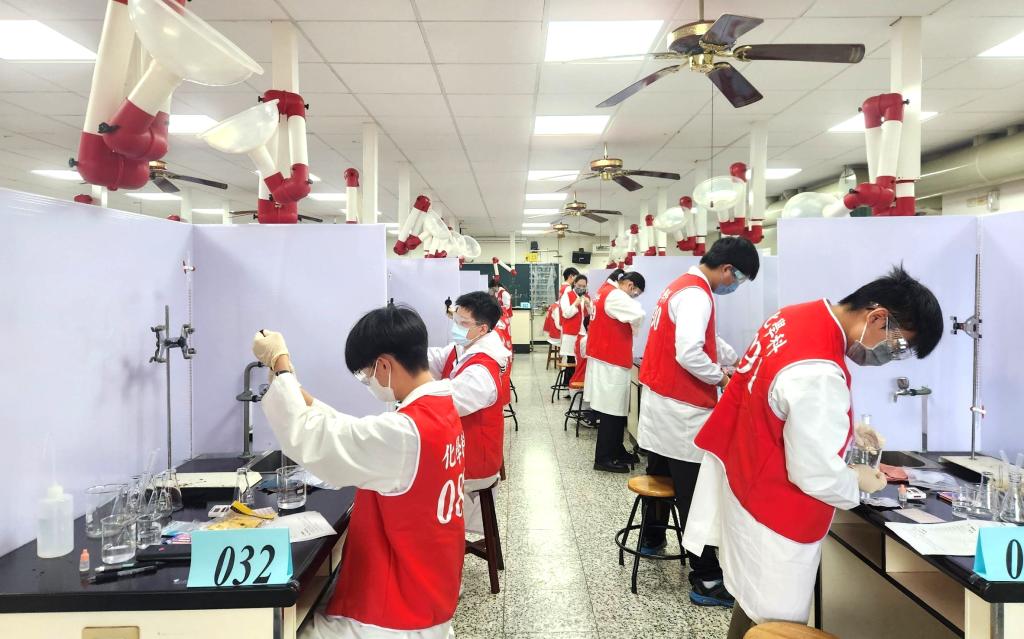 圖說:新北高中辦理的化學科複賽,參賽學生進行賽前實驗器具檢查。