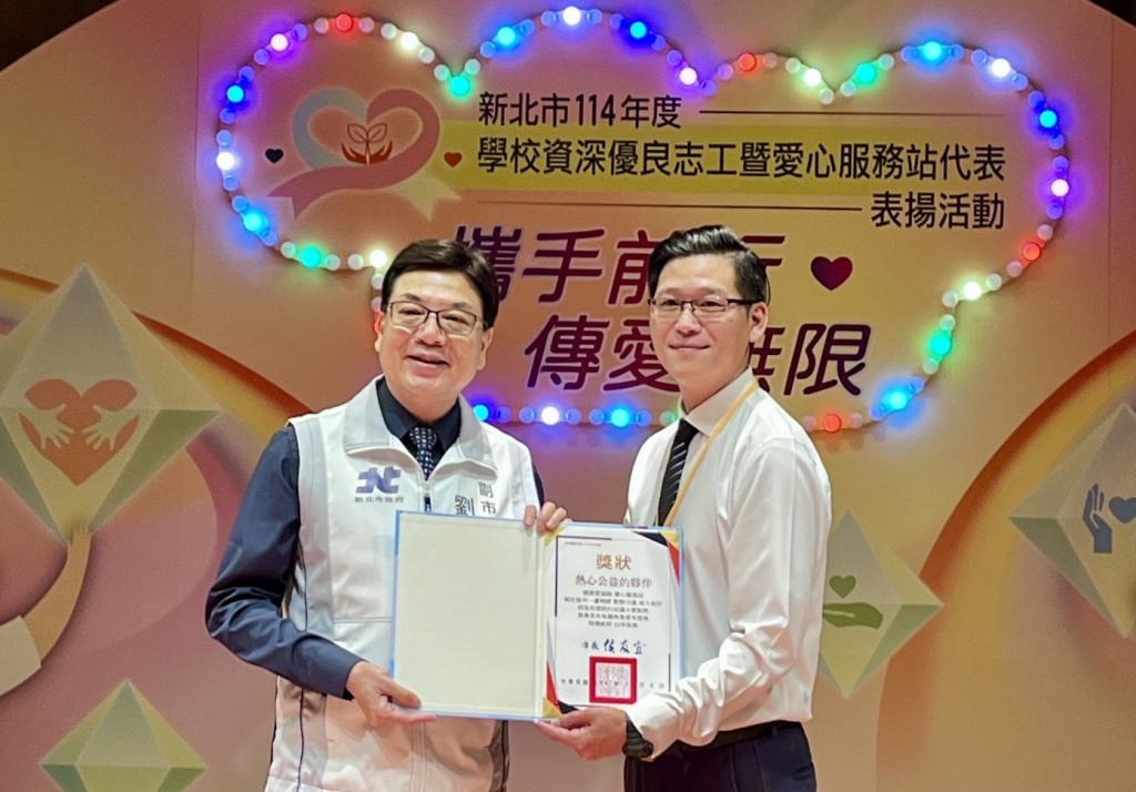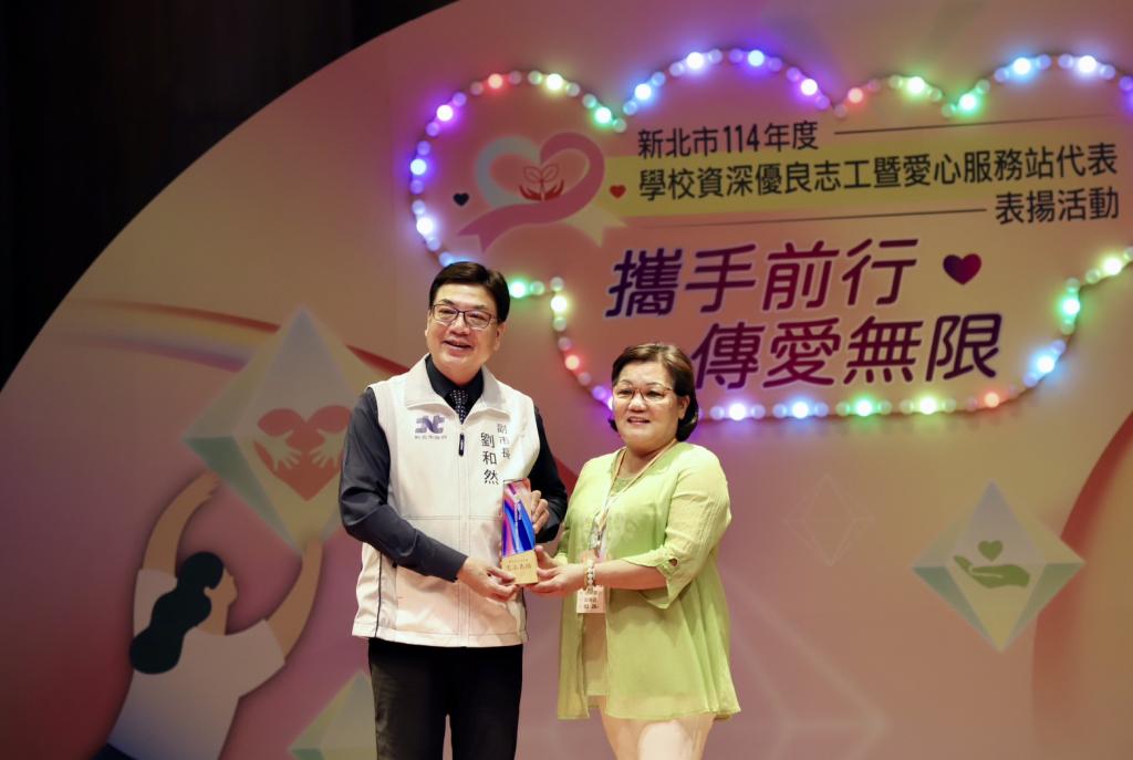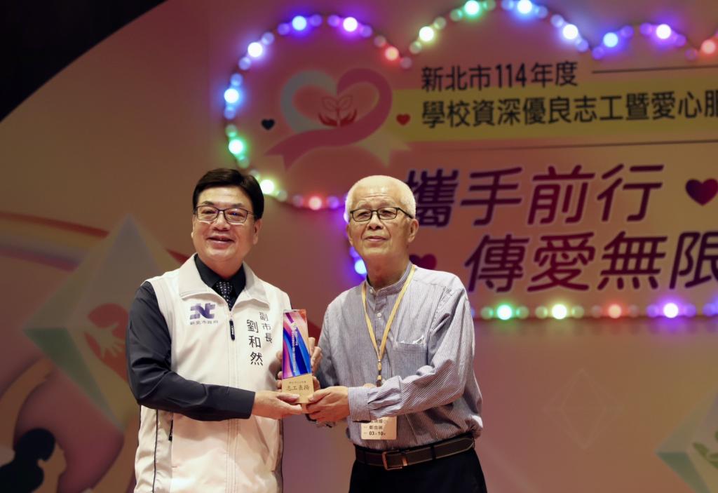 圖說:新北表揚485位資深優良志工暨愛心服務代表 劉和然感謝:校園最美的風景是你們