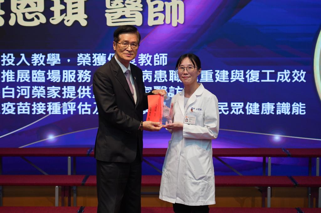 嘉義榮院肝膽腸胃科科主任陳柏翰,對行政與臨床業務皆積極負責,表現優異,對醫院貢獻良多;除認真照護住院與門診病患,與同仁相處融洽,深獲好評外,亦熱心參與社區衛教講座,推廣健康知識,並支援矯正機關門診及擔任該院專科護理師訓練講師,展現專業與教育熱忱。