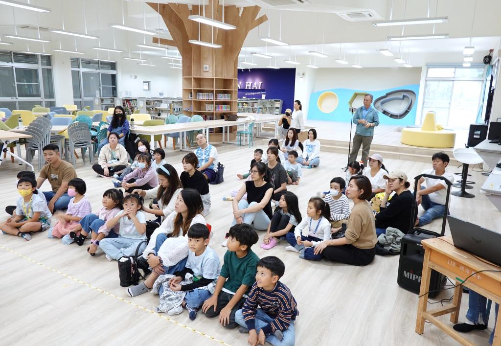 圖說:《魔法餅乾》戲劇演出,孩童一起觀戲參與好逗趣。