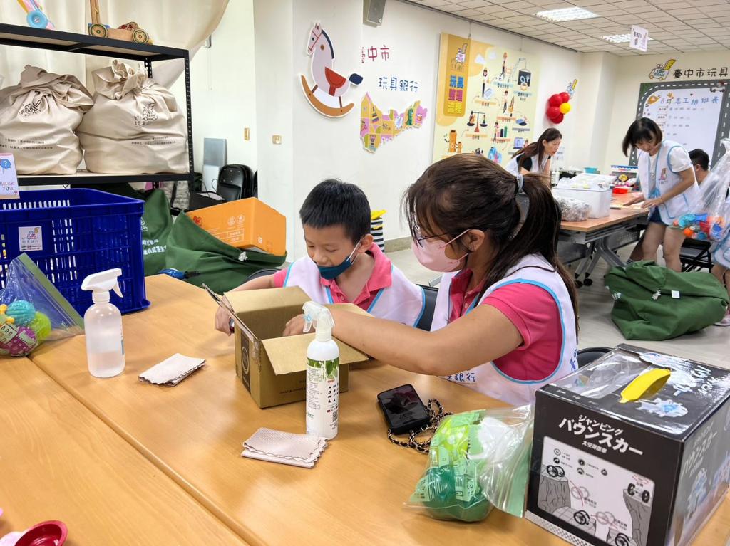 志工隊長傅玟瑜,是三個孩子的媽媽。她笑說,一開始只是偶然路過玩具銀行,沒想到卻展開了一段充滿愛與成長的旅程。她與先生、孩子們一同投入服務,從分類、清潔到包裝,家人共同參與的過程中,孩子們學會了珍惜,也學會了分享。有一次玩具交換活動,許多家庭帶著孩子排隊交換玩具,當她看到孩子眼中閃閃發亮的期待時,非常感動。她說:「玩具的生命延續了,愛也在家庭與家庭之間流動。」