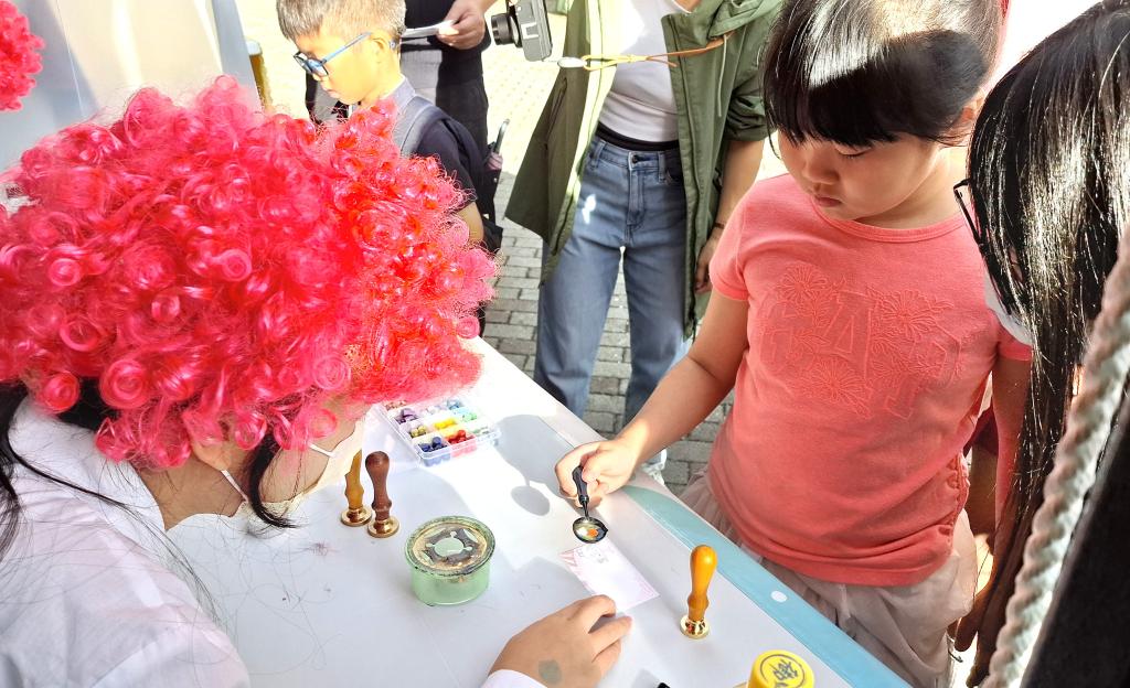 活動現場新北學子創意無限,三峽國中以「生活中的三態變化」為題,學生自製分層蠟燭展示物質變化。關主陳采嫺同學分享,利用物質的三態變化原理自製手作蠟燭,可以自由調色,還能做出分層效果,運用簡單的科學原理也可以變成不一樣的趣味。