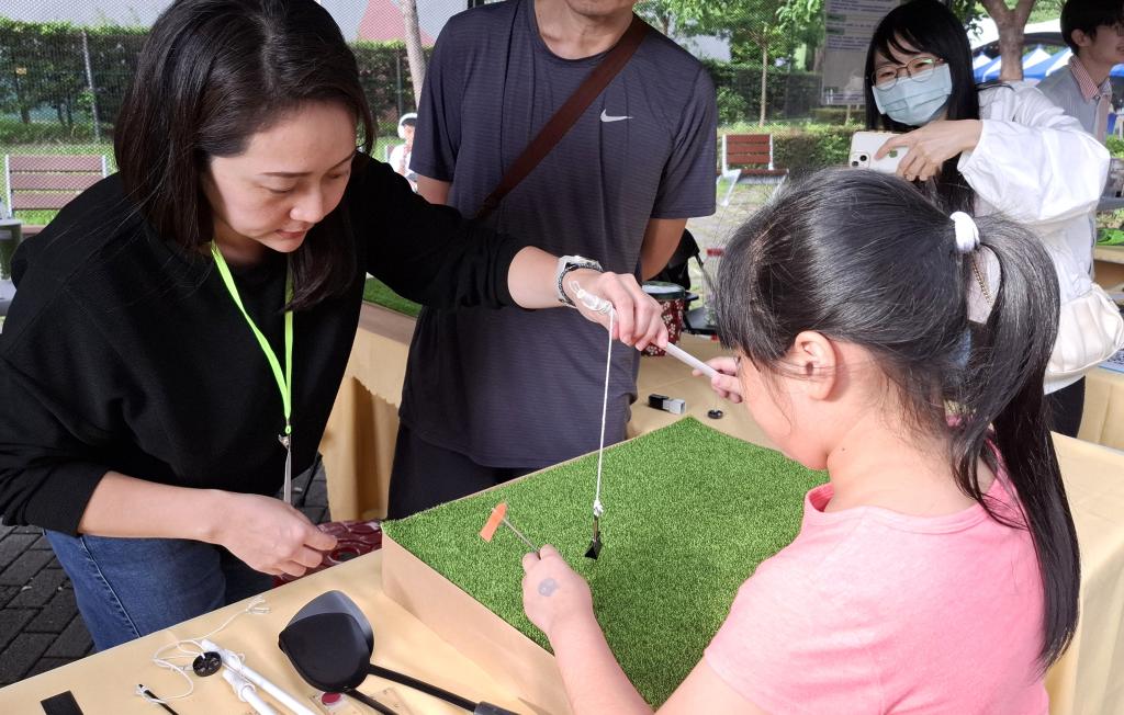 新埔國小「智掃雷區–找出致命的吸引力」讓參觀者運用磁吸原理尋找隱藏地雷,考驗觀察與策略,科學+計畫主持人李偉斌老師表示,關卡設計的目的是運用科普知識,讓大家運用不同工具找出藏在『草皮』下的磁鐵地雷;板橋國中的「聲動大挑戰」以聲音控制水位與音階,結合物理與趣味;石門實驗中學更展出「3D立體製造機」,以裸眼全息投影呈現未來科技感,吸引許多親子駐足體驗。