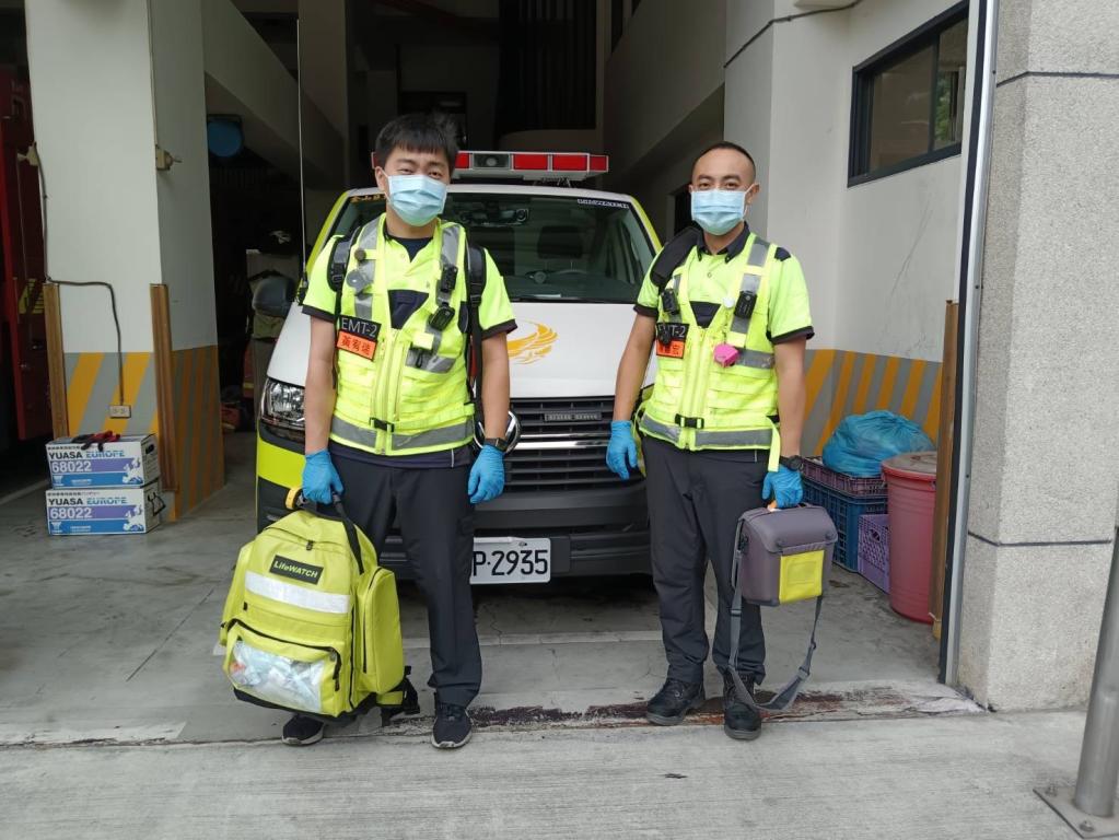 ▲圖左起:竹市消防局金山分隊黃宥瑞、陳嘉宏,成功挽救OHCA患者。(圖/竹市府提供)