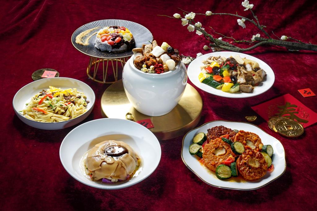 圖說:台中福華冷凍素食「開運錦繡素食年菜套組」早鳥優惠價$3,988 (原價$5,200),提供蔬食者年。(台中福華提供)