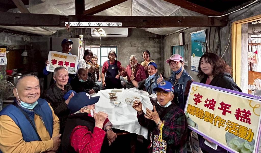 接著由梁氏姐妹介紹並示範「寧波年糕」製作過程,從浸泡、磨米、蒸熟、攪拌到搓揉成型工序,純手工手藝更展現代代相傳家鄉味;梁氏姊妹也特別說明寧波年糕使用白飯的蓬萊米,而非糯米,這讓擔心會消化不良長輩放心食用。