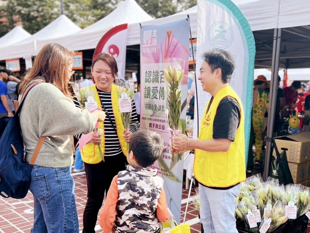 除了串連社區力量,豐邑集團今年更跨界攜手農糧署與台灣百合產業發展協會,推動「百合公益」。活動現場捐出上千朵台灣百合供義賣,以「認識百合、讓愛傳承」的理念,期望每一朵花都能在家庭心中種下祝福與希望。百合象徵純潔與愛的延續,義賣所得將全數捐給新竹家扶中心,讓花香化為支持弱勢孩子的力量,「花開有愛」真正在社會綻放。