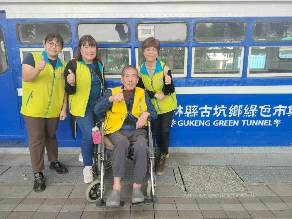 微旅行分2梯次舉行,分別由家主任及副主任帶隊,工作人員推送行動不便住民長輩們搭上榮家為住民準備復康巴士,一路上有說有笑前往雲林古坑鵝媽媽鵝童驛站及綠色隧道。