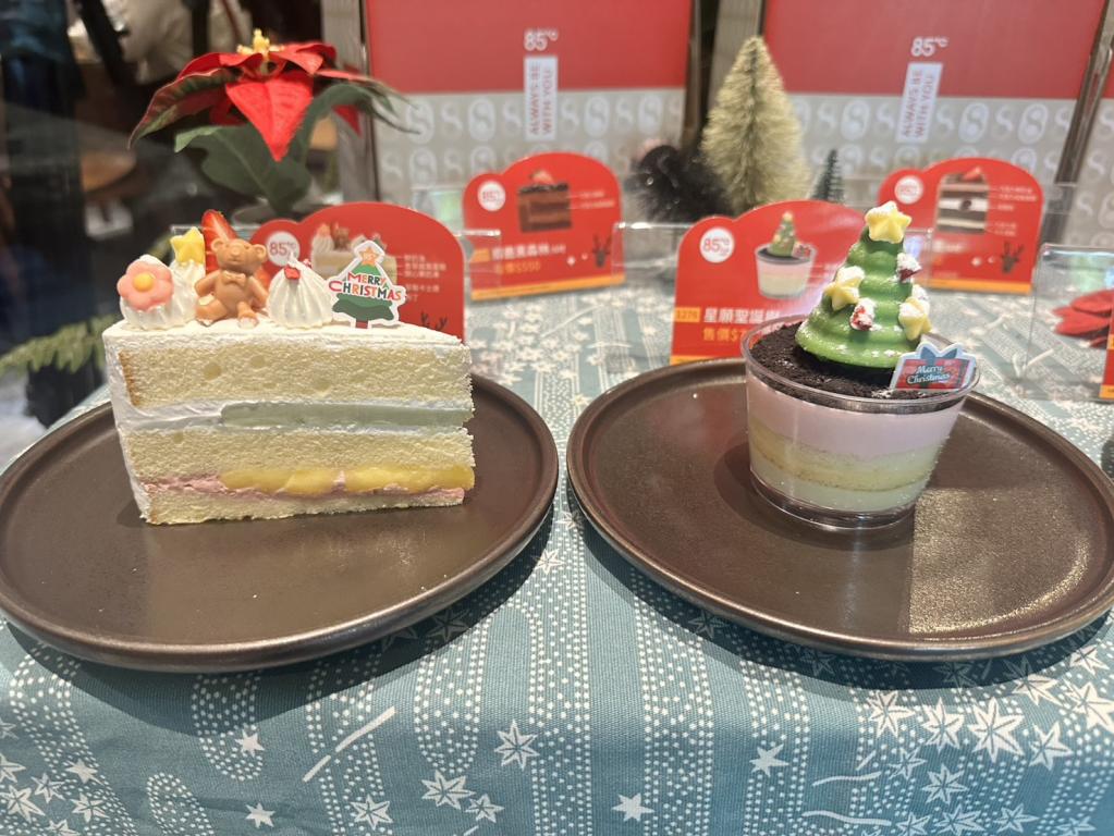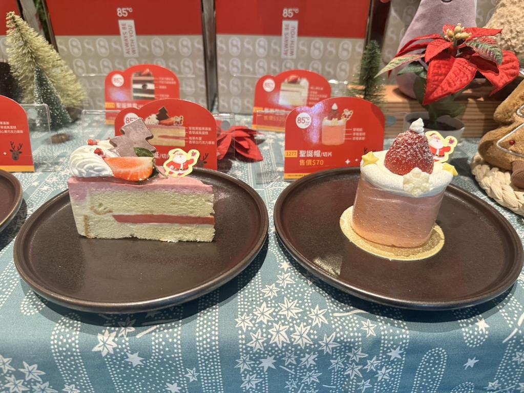 圖說:85℃聖誕七款蛋糕夢幻登場、主題切片第2件8折、大杯咖啡第2杯30元。(記者張亞痕攝)