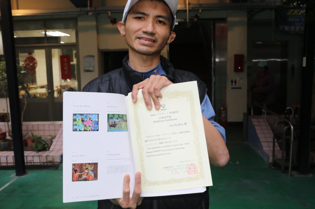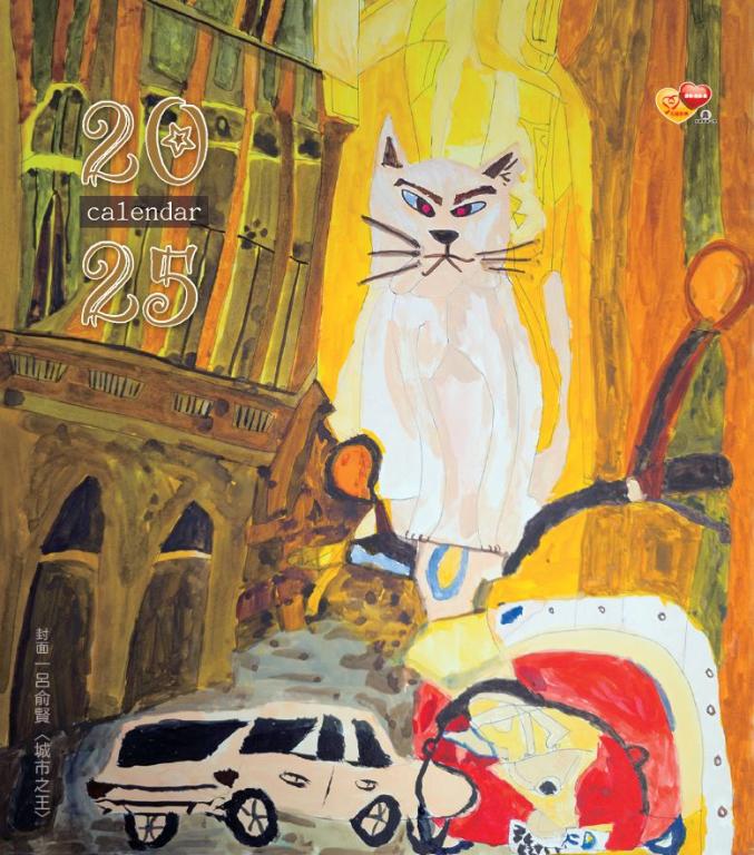 (勁報記者胡光輝/新北報導)入住中和崇愛中心的呂俞賢是位心智障礙者,雖然他不擅言語表達,但透過畫筆抒發內心的孤獨世界和渴望,不僅連年獲得新北市「愛在畫中」優勝,也曾入選日本東京第9回國際交流展。由於他父親今年往生,母親年邁,且家中還有一位同為心智障礙的哥哥,只賴撿拾資收貼補家用。社會局媒合圓融行善團幫忙,圓融集資捐贈22萬元,呂俞賢回贈2025年作品「城市之王」,該幅作品還成為社會局年度桌曆的封面。