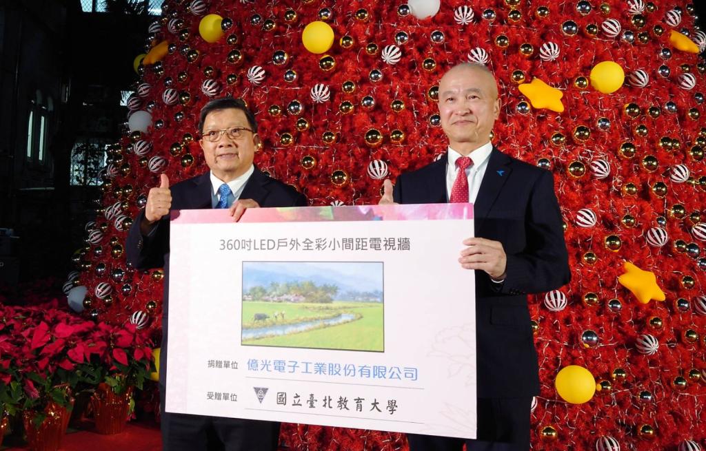 圖說:國北教大感謝 億光文化基金會葉寅夫董事長夫婦 捐贈「360吋LED戶外全彩電視牆」。