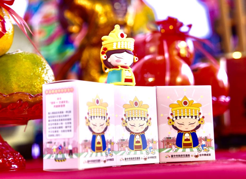 (記者張亞痕/台中報導)媽祖逗陣、行路平安!中市交通局長葉昭甫今(29)日與樂成宮董事長何敏誠於樂成宮共同啟動「行動光明燈交通安全吊飾」亮燈儀式。當象徵庇佑的旱溪媽祖造型吊飾亮起時,現場民眾紛紛驚呼「好神氣」、「卡哇伊」,活動現場既溫馨又熱鬧。