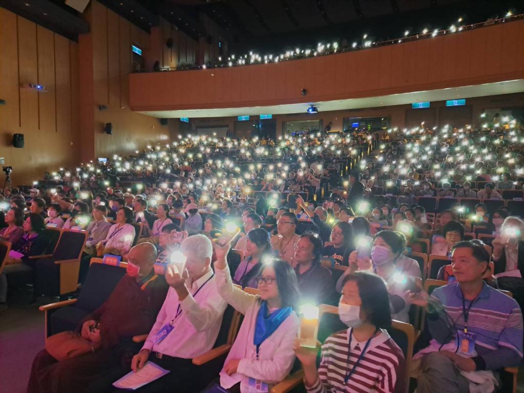 圖說:現場觀眾打開手機亮光合唱「祝福」,會場充滿感動和讚嘆。。