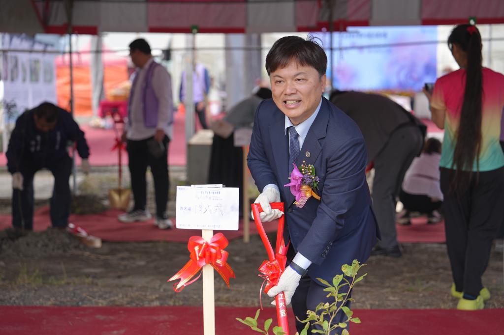 ▲宜蘭大學校長陳威戎植下象徵百年願景的樹苗。