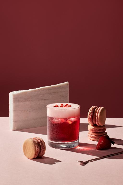 此外,不二糕餅更攜手VENDER將東南亞熱帶風味,融入糕餅與調酒中,讓微醺成為一場味覺與感官的旅行。首推這款糕餅×調酒pairing「玫瑰露」,搭配草莓福令卡以玫瑰花香縈繞與草莓果韻交融,柔甜泡沫綻放南洋浪漫。