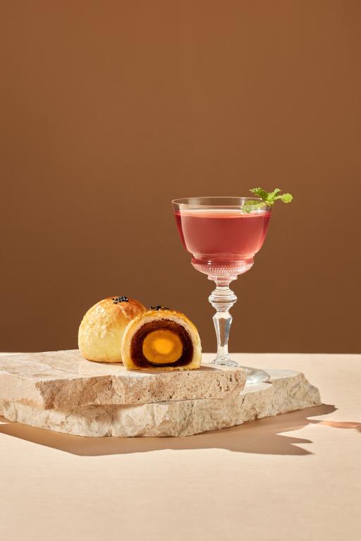 特別推薦兩款糕餅×調酒pairing「煙月流芳」與「朝露和風」,其中「煙月流芳」搭配蛋黃酥以果香與蜜香交織,為蛋黃酥的鹹甜交織作為點睛之筆,最後與威士忌醇厚融為一體,風味深邃雅緻。而「朝露和風」搭配茶鳳黃以柚子清香、紫蘇與琴酒交織微醺林間光影,呼應茶鳳黃的鳳梨餡酸甜與茶的雅緻。