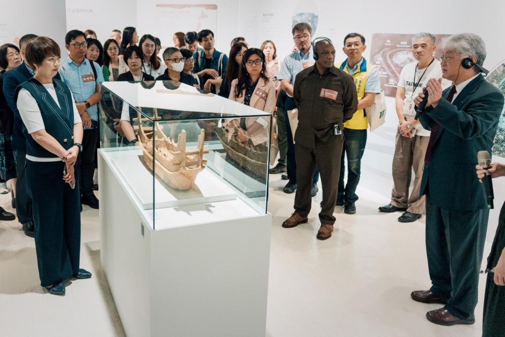 除了盤龍鏡,展覽中還有其他重量級文物亮相,包括長達1公尺的靈魂渡船-船形埴輪,重現5世紀造船技術的精湛工藝;來自南方海域的珍稀貝鐲,見證日本九州權力階層如何透過物質交換鞏固地位;以及首次展出的乳藍色玻璃珠飾、方格印紋圜底罐等11件十三行遺址出土文物,共同編織出一幅跨越時空的壯麗文化交流畫卷。