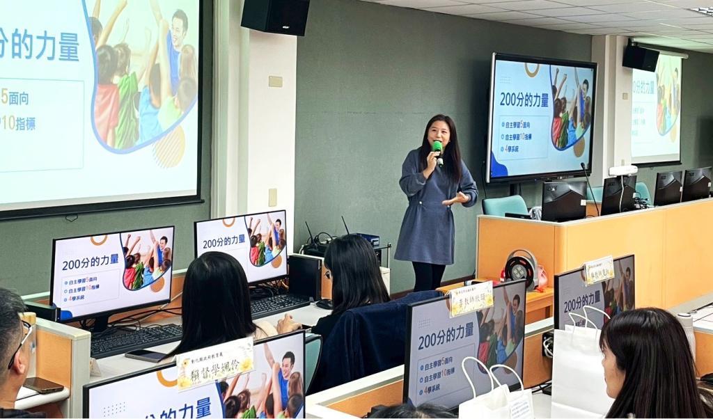 圖說:福和國中林雯淑教師說明如何透過自主學習及四學提供200分的力量。
