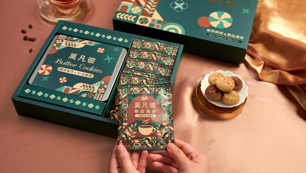 禮盒內容豐富,每組包含莫凡彼曲奇餅乾1盒及莫凡彼精品濾掛咖啡5包。曲奇餅乾堅持不添加任何香精並採蛋奶素配方,內含兩種風味:「經典奶油曲奇」選用來自法國的天然奶油,擁有發酵奶油獨特香氣,口感酥鬆紮實;「莫凡彼咖啡曲奇」則選用100%阿拉比卡豆的莫凡彼金牌咖啡製成,經精心烘焙呈現迷人咖啡香。搭配的濾掛咖啡更是不凡,選用「衣索比亞 西達摩」水洗淺焙豆,帶有白桃、青茶、軟糖與蘋果的清新風味,酸甜平衡且餘韻悠長,與曲奇餅乾形成絕妙搭配。