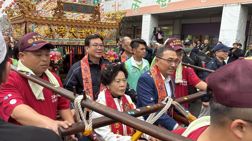 圖說:侯友宜與出席貴賓一同扶轎祈福,希望地方順利、百姓安康。