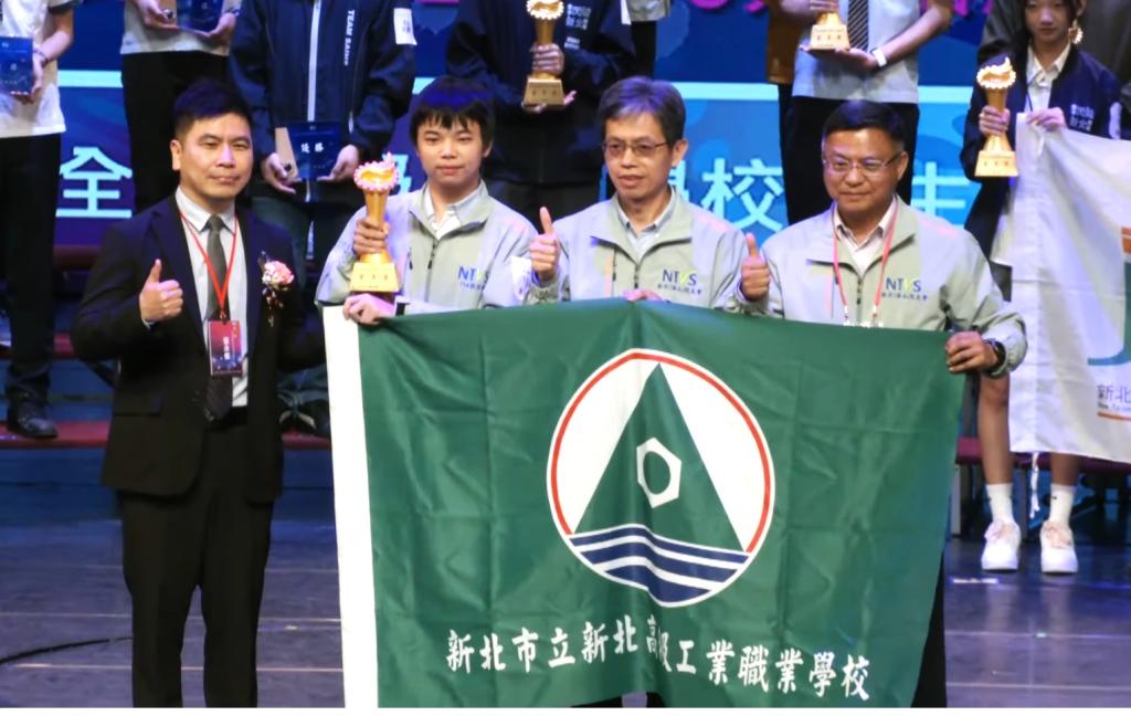 新北市技職教育長期投入AI領域科技發展,其中「機器人」項目在新北高工協助金手培訓下已創下連續五年稱冠紀錄,今年集合7校一起培訓及跨校合作,成功創下「校校有獎」的史上最佳紀錄──鶯歌工商勇奪全國第一、新北高工第三、瑞芳高工第四,三重商工、泰山高中、樟樹實中與東海高中皆獲優勝,展現「跨校共好」的技職新典範;而模具職種亦由新北高工與三重商工強勢包辦四位選手全獲獎,再次證明新北培訓模式的高強度與高成果。