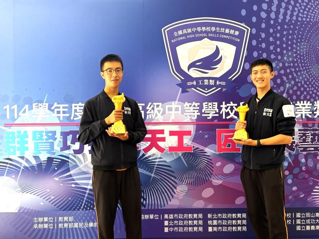多所學校的亮眼表現也寫下新紀錄。瑞芳高工一舉奪下11座金手,創下校史91年以來最佳紀錄;榮獲測量職種金手第一名的孫煜翔、李威瑱分享,他們歷經一年超過百次訓練,不論酷暑或風雨都堅持到場,感謝趙雅靜與翁明郎老師,不僅傳授專業,在挫折時給予關鍵支持,讓他們一次次突破極限。