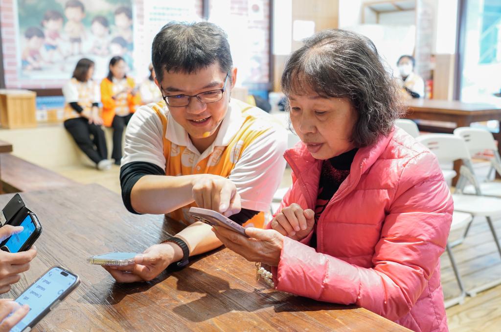 來自三峽崇德光慧據點的王麗芬表示,她經過18小時的培訓和2個月的學習,帶領長輩如何下載並使用App,像財政部雲端發票、健保局的健保快易通,長輩上手後就不用再一張張對發票,也可以隨時了解自己的就醫和健康狀況。另外明年敬老卡擴大用途和點數,下載55688叫車,每趟可折抵85點(元),長輩學會了都覺得很好用。