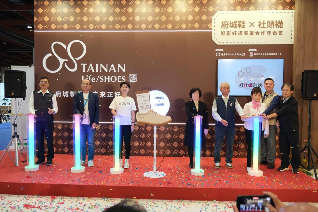 此外,現場亦透過「府城鞋主題館」展示「府城鞋」品牌故事,搭配「社頭襪」公協會(台灣織襪工業同業公會、彰化縣織襪產業發展協會、彰化縣社頭織襪產業園區廠商發展促進會)提供的機能襪產品及「府城鞋」款,呈現鞋襪產業的技術特色,展現「府城鞋」與「社頭襪」在產品力與品牌力上的互補性。