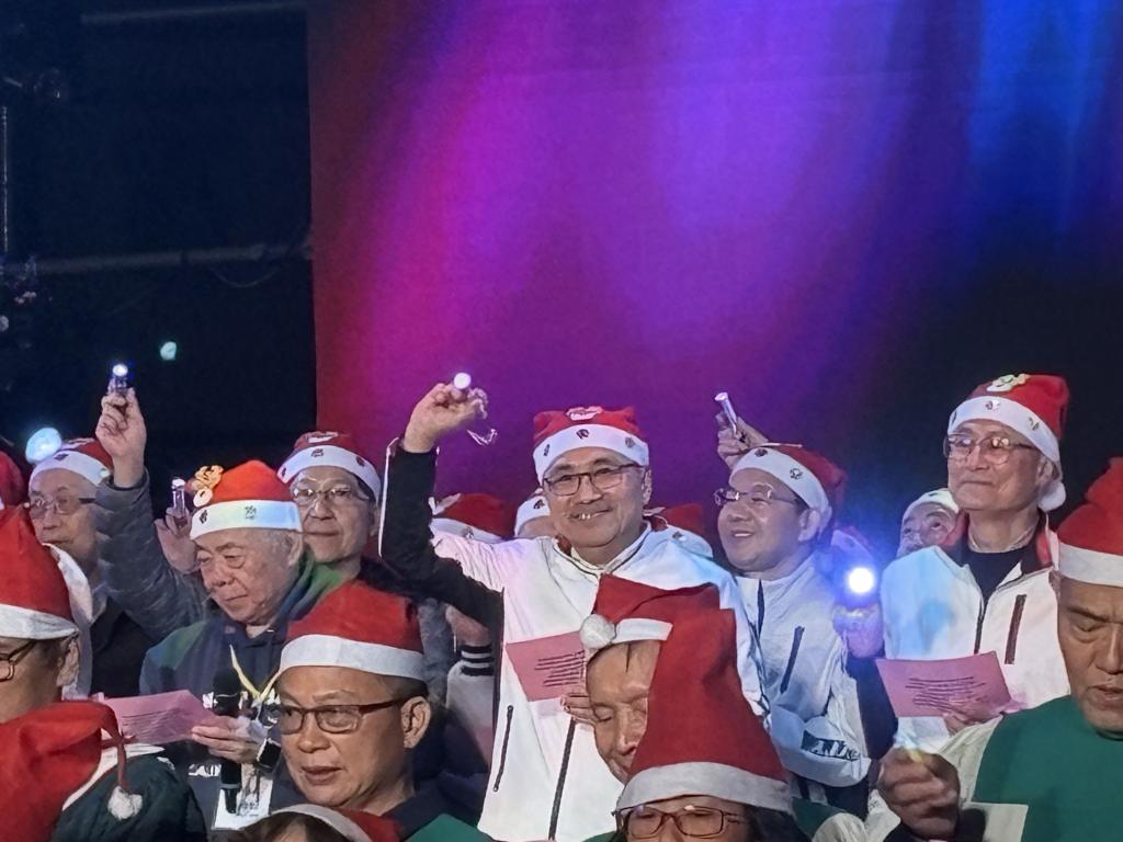 圖說:市長侯友宜領銜市府團隊與各教會牧長、百人詩班向萬名遊客報佳音,為城市送暖。