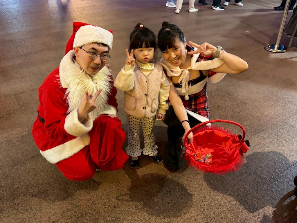 圖說:晚會現場也有市府員工化身為耶誕老公公和耶誕女孩,和平安虎一起向民眾發糖果,傳遞喜樂給更多的人。