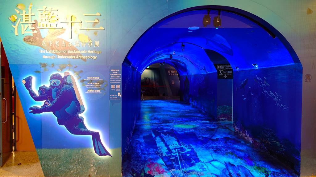 同步登場的「湛藍十三」常設展則帶領觀眾潛入蔚藍深海,現場展出由文化部文資局出借的「博卡拉(Bokhara)」沈船珍貴文物,並搭配十三行館藏全臺罕見、保存完整的「古水牛頭骨化石」,呈現臺灣豐富的水下文化資產面貌,展覽同時邀請金鐘導演李景白授權深海影像,以及金鐘主持人大霈(李霈瑜)獻聲導覽,透過極具臨場感的視聽體驗,讓民眾彷彿置身海底,感受水下文化資產的震撼與美麗。