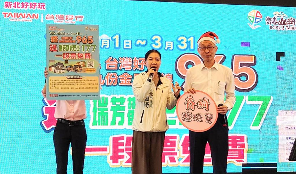 (勁報記者胡光輝/新北報導)瑞芳位於新北市東北角,三面環山、一面臨海,不僅擁有九份、金瓜石等國際知名景點,更是深受國內外旅客喜愛的觀光勝地。為鼓勵旅客使用公共運輸、提升觀光服務品質,國立陽明交通大學北部區域運輸發展研究中心王晉元教授與閻姿慧教授,執行「偏鄉公共運輸結合觀光服務計畫」,輔導臺北客運優化新北市177瑞芳觀光巴士路線,並攜手推出「搭965台灣好行九份金瓜石線,送177線一段票」試辦方案。