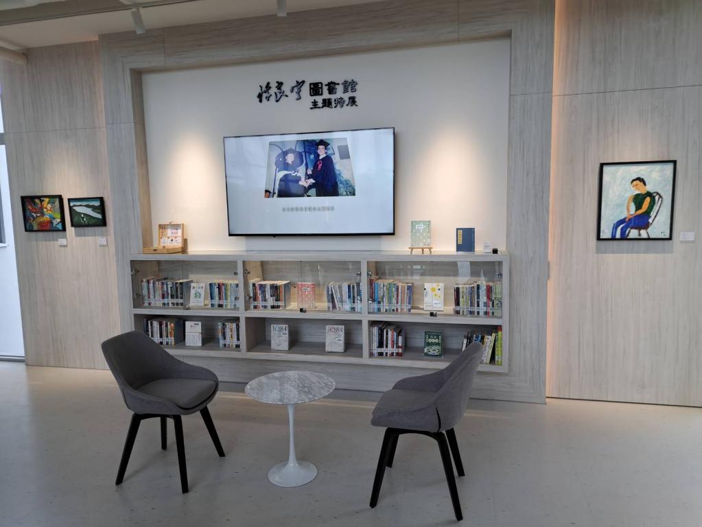 圖說:許良宇圖書館特展,收藏許良宇的篆刻作品集、畫作與喜愛的書籍。(記者張亞痕攝)