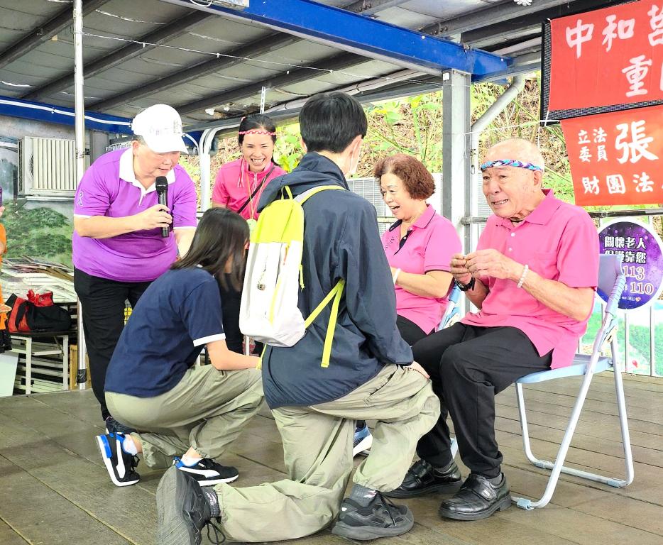 中和區莒東社區在成果分享中回顧重陽節活動,一場「奉茶敬老」儀式的畫面特別觸動人心。兩名孫子女單膝奉茶、輕聲說出「阿公,請喝茶」,九十餘歲的阿公接過茶杯時眼眶泛紅,祖孫在那一刻自然地深情相擁。這一幕不僅感動了現場所有人,也讓人深刻體會,家庭教育的連結,往往就從一杯茶或是一個擁抱開始,孩子在行動中學會尊重,家庭也因此更靠近。