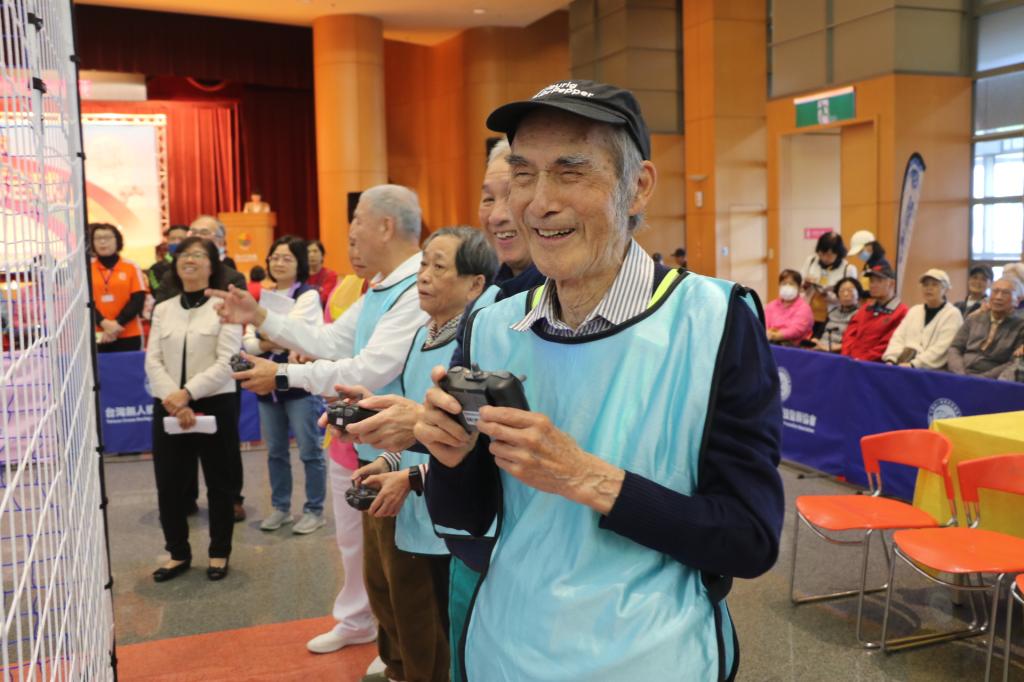 同場舉辦的新北市首屆「銀髮×青年共創未來」無人機足球種子教練培訓成果展,共有14組由銀髮長輩與青年志工組成的聯隊同場競技,充分展現「活到老、玩到老、學到老」的世代共融精神,也為新北智慧高齡城市寫下嶄新的一頁。