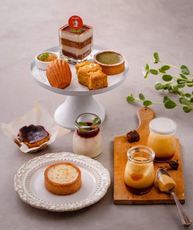 「13 CAFÉ」特別與「新北市設計中心」合作,重新設計品牌logo,並獲台新銀行支持,由擅長綠裝修的邱美瑄設計師以考古學中「文化層」結合「永續」概念轉化為空間語彙,運用國產天然塗料鏝抹出文化層牆面,重現考古現場中深埋千年的紋理層次與貝殼陶片,讓民眾彷彿進入考古挖掘現場,另搭配「台灣木材」標章認證的國產材及循環修枝木家具落實永續精神,並提升場域價值。餐點攜手「里仁」、「玄米大吟釀」及「甜素-Sweet Vegan」等夥伴,貫徹「友善環境」的核心價值。餐點除結合考古元素外,分別選用無農藥化肥的台灣米與在地好食材,將大自然的純粹滋味端上餐桌,並以逗趣的台新銀行Richart餐點小卡點綴,增添活潑氣息。甜點則有「文化層考古米蘇」以及復刻鎮館之寶的「人面陶罐司康」等,堅持無奶蛋、無添加,讓民眾在享用美味的同時也能兼顧健康。飲品推薦以頂級玄米醋、蝶豆花及新北特色石花凍調合的凍飲,堆疊出考古挖掘般的驚喜口感。